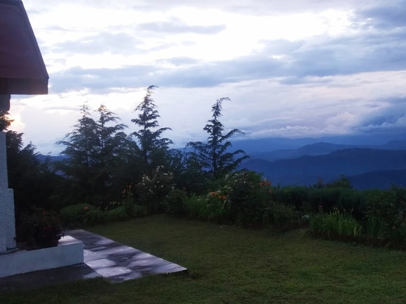 Located at Naini, 3-kilometers from the Kalika golf course, and an under five-minute drive along the scenic national highway. The ‘Villa Elite’ is set in a 3-acres estate – amidst fruit trees, flower beds, cedar tree-lined private driveway, art studio annexe. It has a commanding view of the Himalayas, mountain ridges and valleys. The location is renowned for the forest walks, sunsets and night lights.