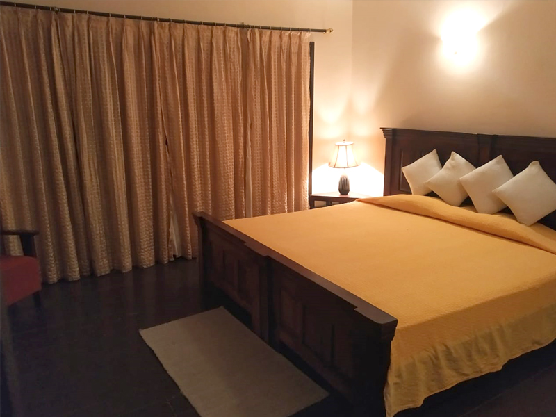 Double-occupancy rooms, with ensuite bathroom and most having space for extra bed, are fitted with modern amenities. The villa has three bedrooms, lobbies, living and dining areas, and it is crafted in local stone-wood and appointed to patrician tastes. Guests' also have exclusive access to the sit-outs, lawns and terraced garden.. |